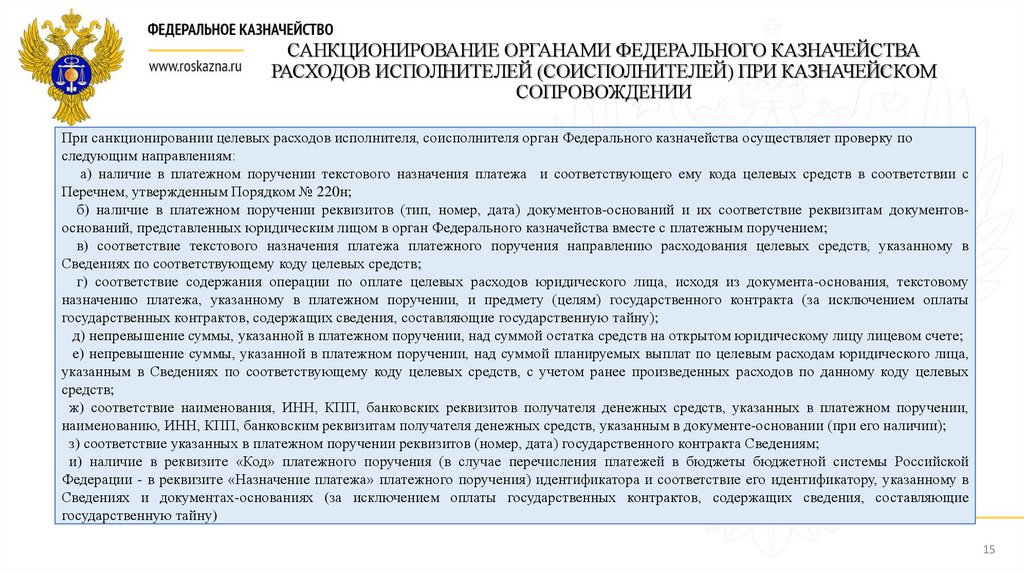 При санкционировании целевых расходов исполнителя, соисполнителя орган Федерального казначейства осуществляет проверку по