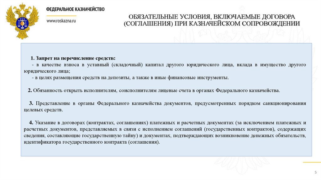 ОБЯЗАТЕЛЬНЫЕ УСЛОВИЯ, ВКЛЮЧАЕМЫЕ ДОГОВОРА(СОГЛАШЕНИЯ) ПРИ КАЗНАЧЕЙСКОМ СОПРОВОЖДЕНИИ