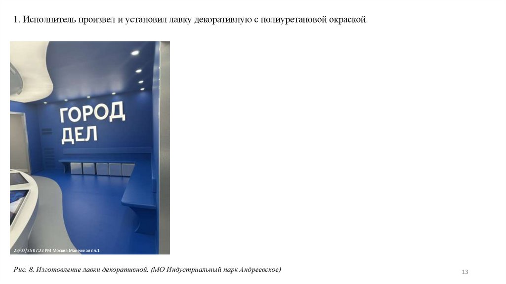 1. Исполнитель произвел и установил лавку декоративную с полиуретановой окраской.07/07/25