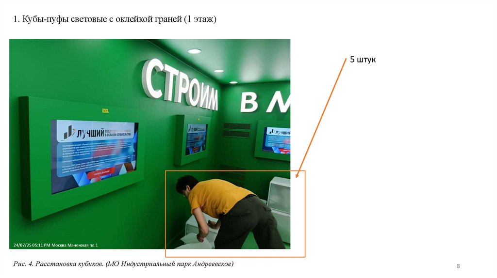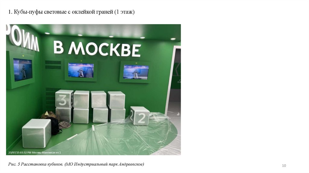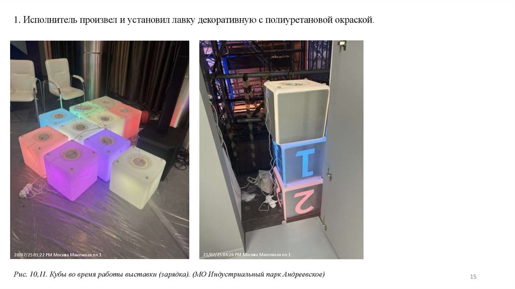 Рис. 10,11. Кубы во время работы выставки (зарядка). (МО Индустриальный парк Андреевское)