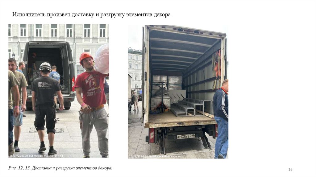 Рис. 12, 13. Доставка и разгрузка элементов декора.