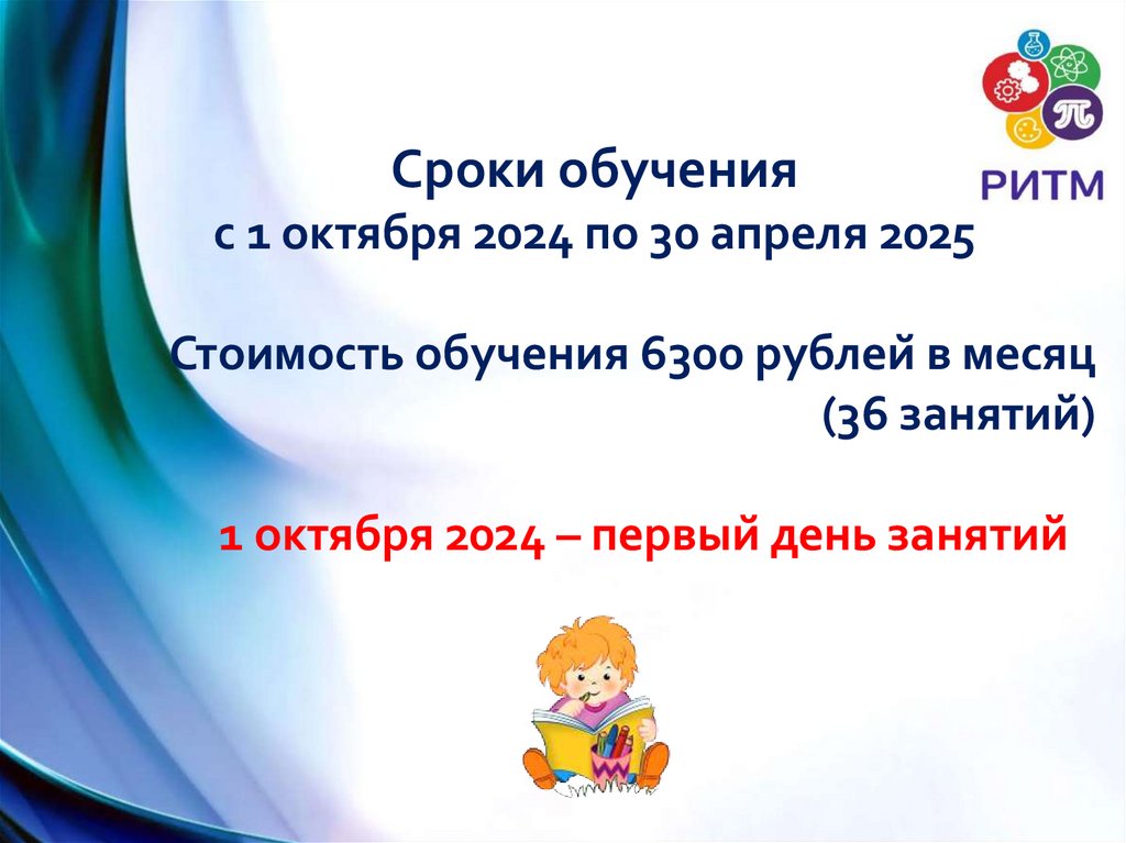 Сроки обученияс 1 октября 2024 по 30 апреля 2025
