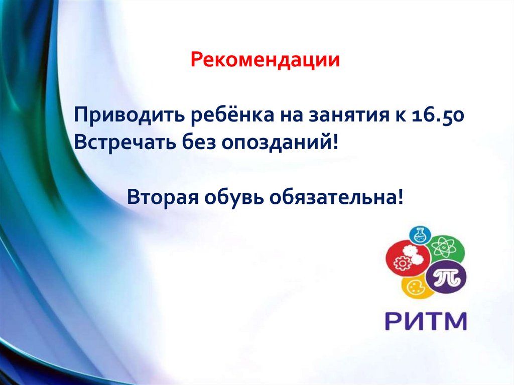 РекомендацииПриводить ребёнка на занятия к 16.50
