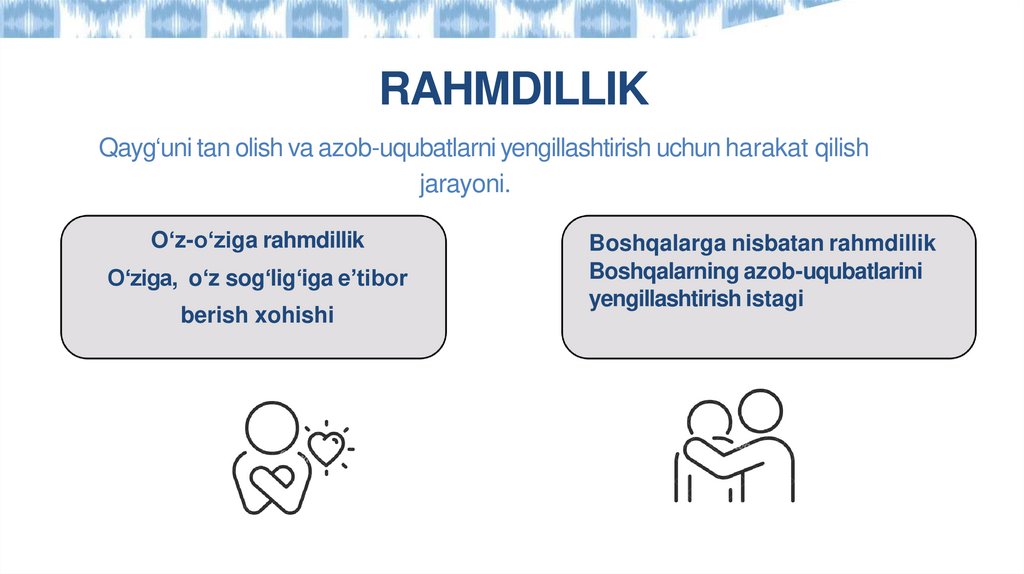 RAHMDILLIKQayg‘uni tan olish va azob-uqubatlarni yengillashtirish uchun harakat qilish