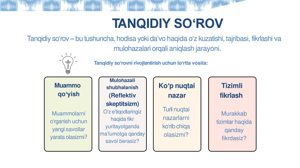 Tanqidiy so‘rovni rivojlantirish uchun to‘rtta vosita: