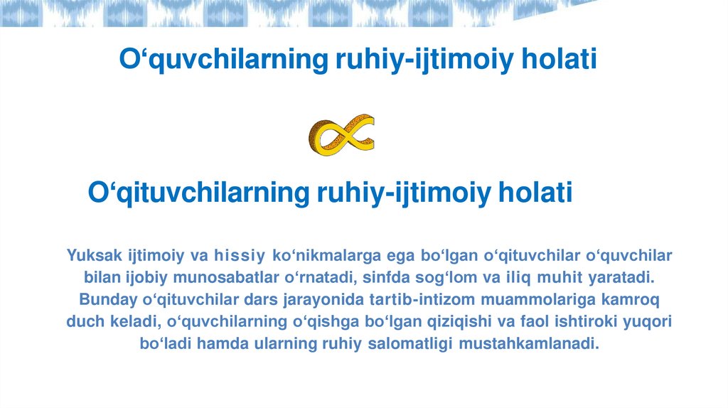 O‘quvchilarning ruhiy-ijtimoiy holatiO‘qituvchilarning ruhiy-ijtimoiy holati