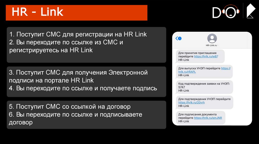 HR - Link1. Поступит СМС для регистрации на HR Link