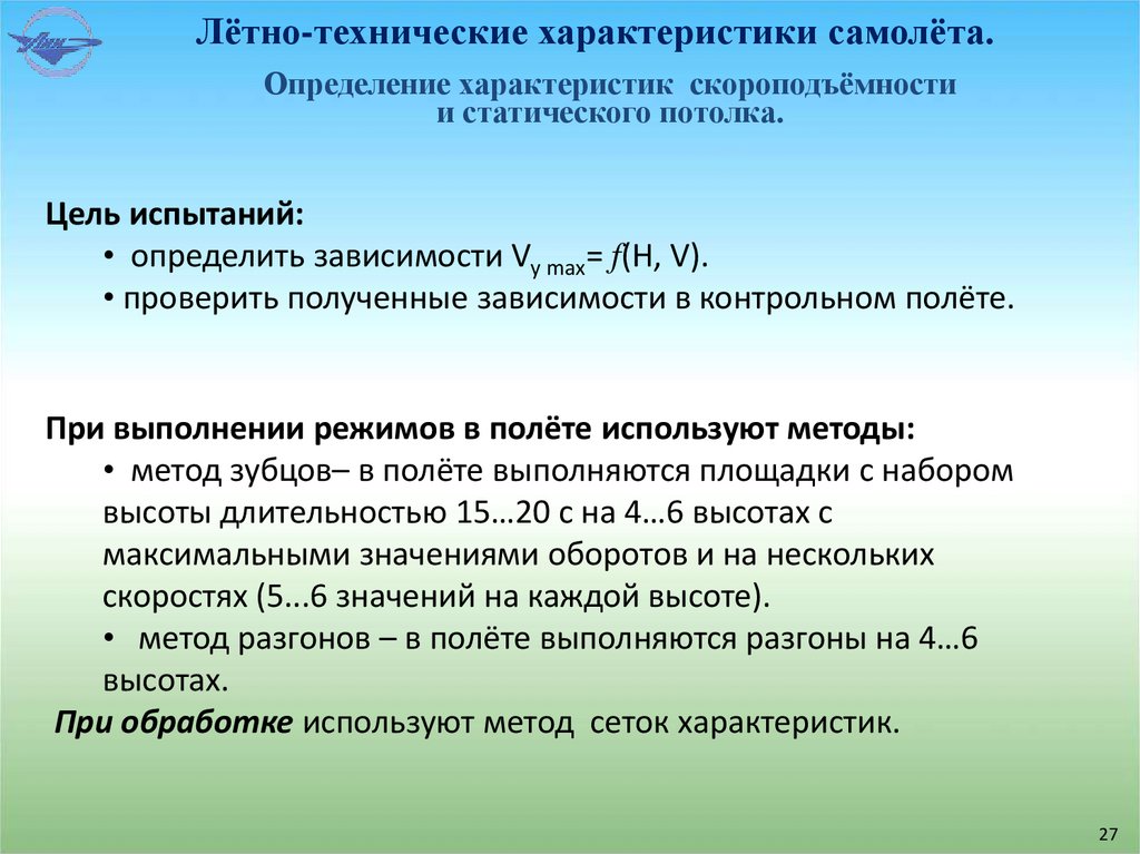 1. Основные характеристики самолета и их определение в лётных испытаниях