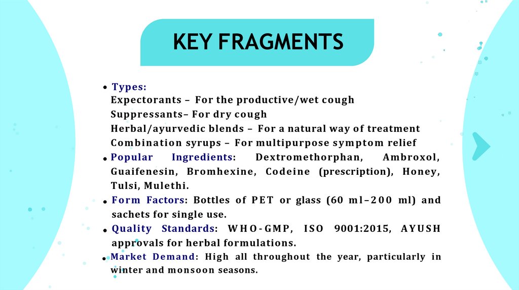 Fo r m Factors: Bottles of P E T or glass (60 m l – 2 0 0 ml) and