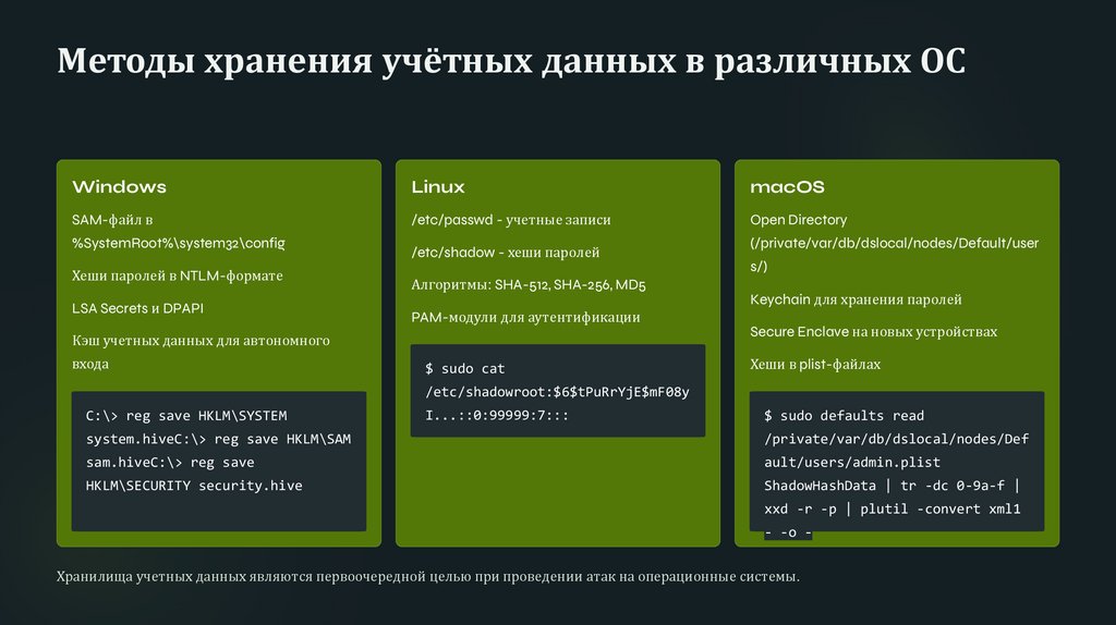 Хранилища учетных данных являются первоочередной целью при проведении атак на операционные системы.