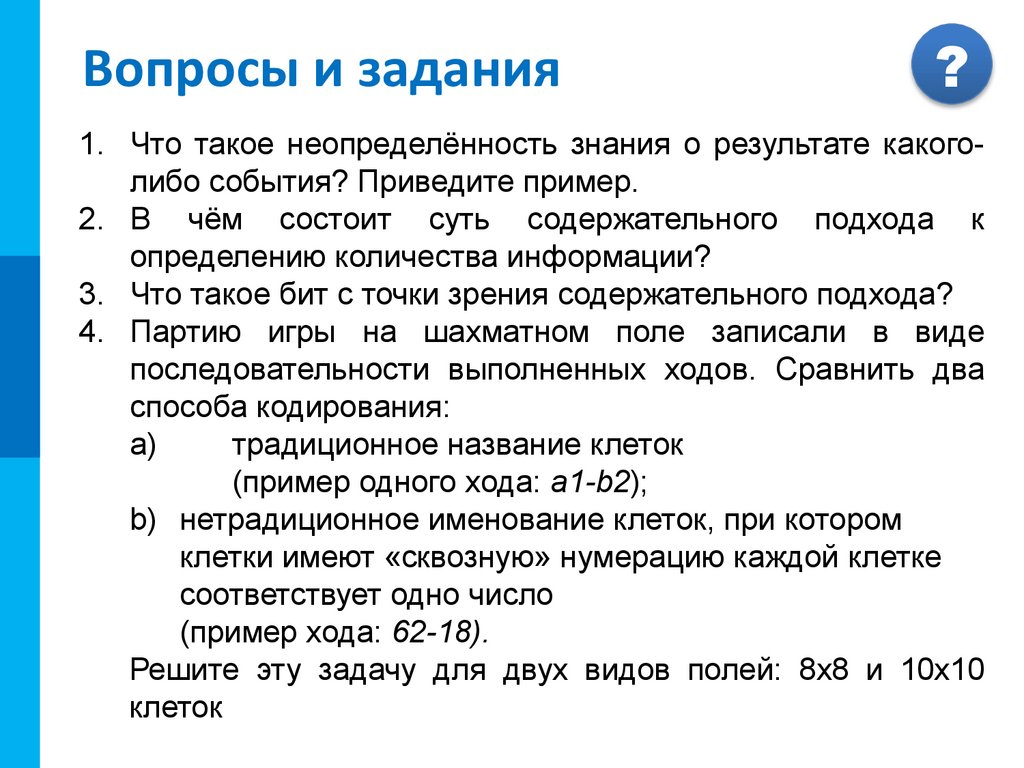 1. Что такое неопределённость знания о результате какоголибо события? Приведите пример.