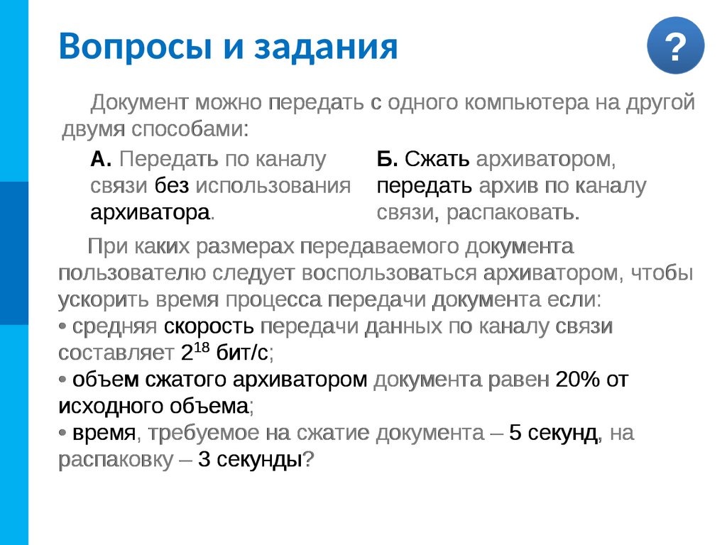 Передача и хранение информации. Информация и информационные процессы (10 класс)