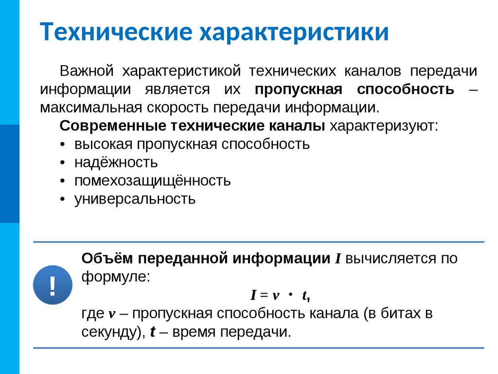 Важной характеристикой технических каналов передачи