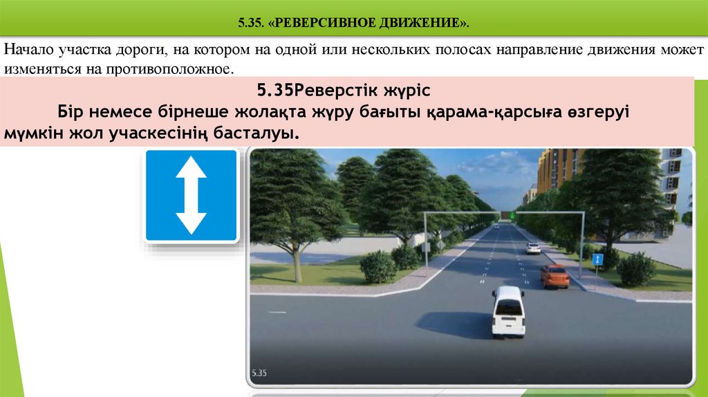 5.35. «РЕВЕРСИВНОЕ ДВИЖЕНИЕ».Начало участка дороги, на котором на одной или нескольких полосах направление движения может