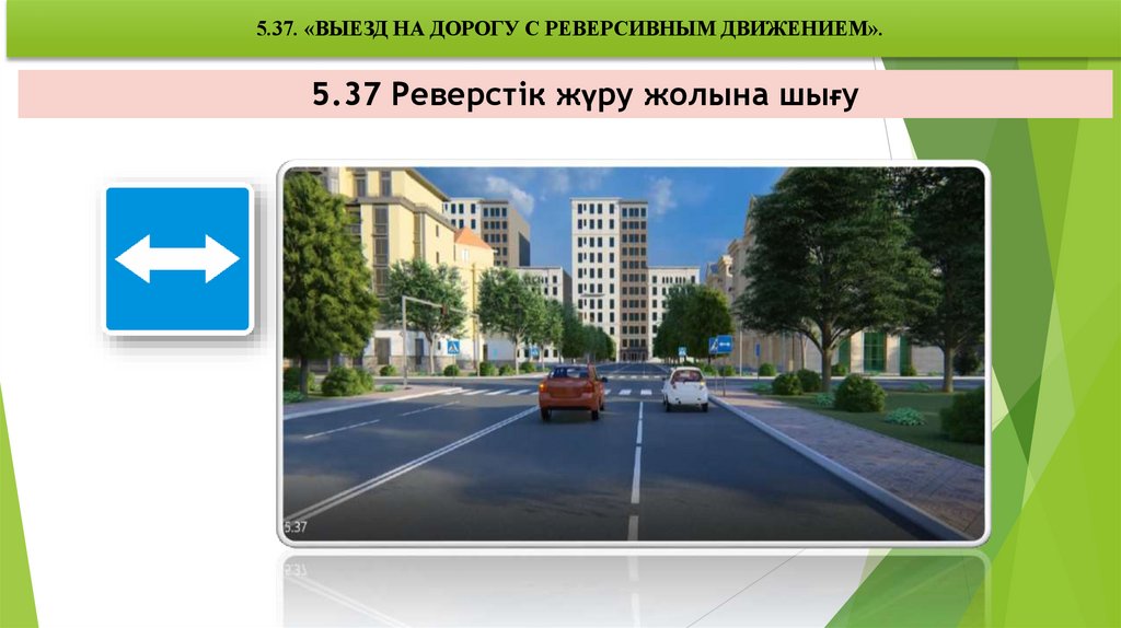 5.37. «ВЫЕЗД НА ДОРОГУ С РЕВЕРСИВНЫМ ДВИЖЕНИЕМ».5.37 Реверстік жүру жолына шығу
