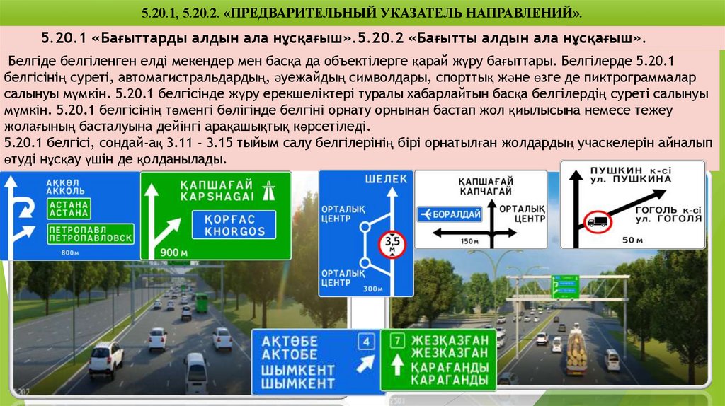 5.20.1, 5.20.2. «ПРЕДВАРИТЕЛЬНЫЙ УКАЗАТЕЛЬ НАПРАВЛЕНИЙ».5.20.1 «Бағыттарды алдын ала нұсқағыш».5.20.2 «Бағытты алдын ала нұсқағыш».