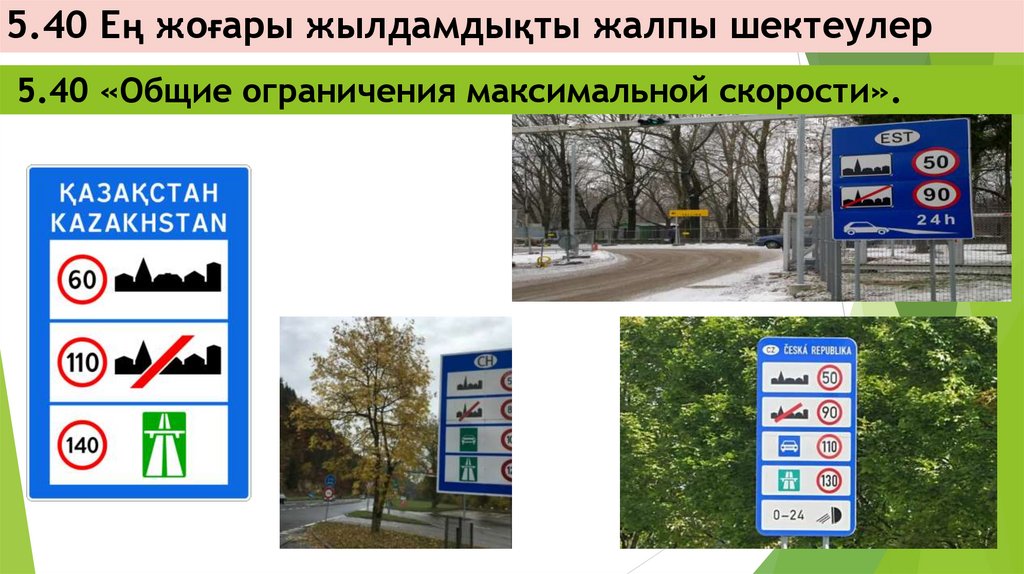 5.40 Ең жоғары жылдамдықты жалпы шектеулер5.40 «Общие ограничения максимальной скорости».