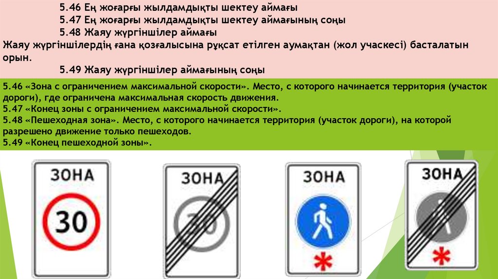5.46 Ең жоғарғы жылдамдықты шектеу аймағы5.47 Ең жоғарғы жылдамдықты шектеу аймағының соңы