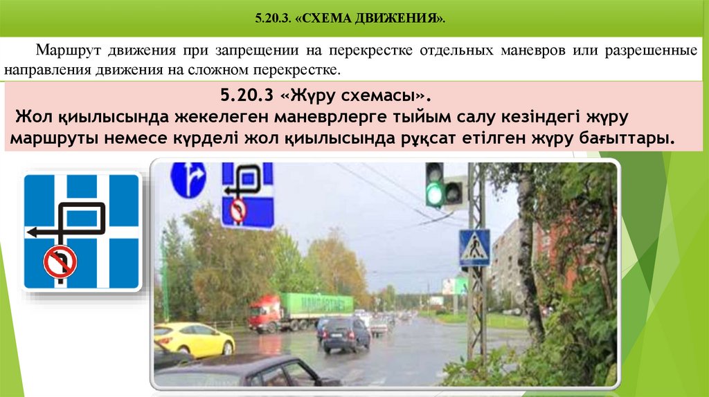 5.20.3. «СХЕМА ДВИЖЕНИЯ».Маршрут движения при запрещении на перекрестке отдельных маневров или разрешенные