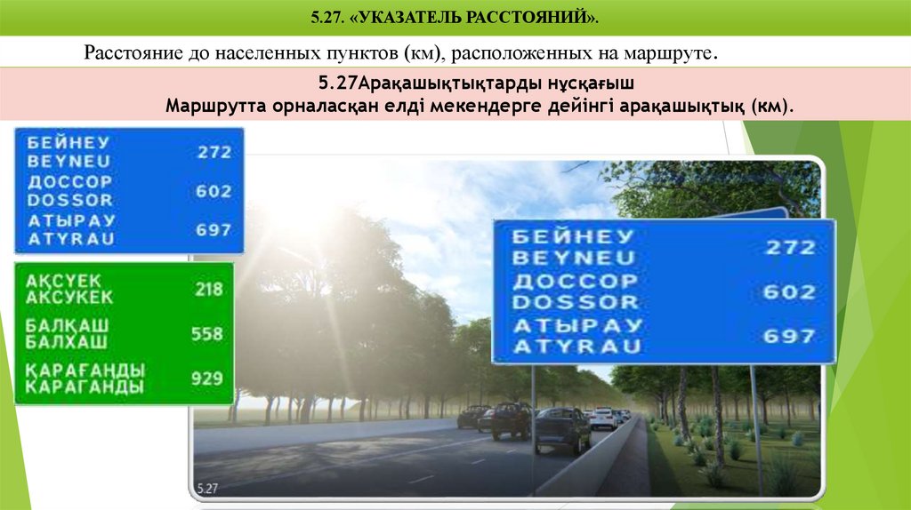5.27. «УКАЗАТЕЛЬ РАССТОЯНИЙ».Расстояние до населенных пунктов (км), расположенных на маршруте.