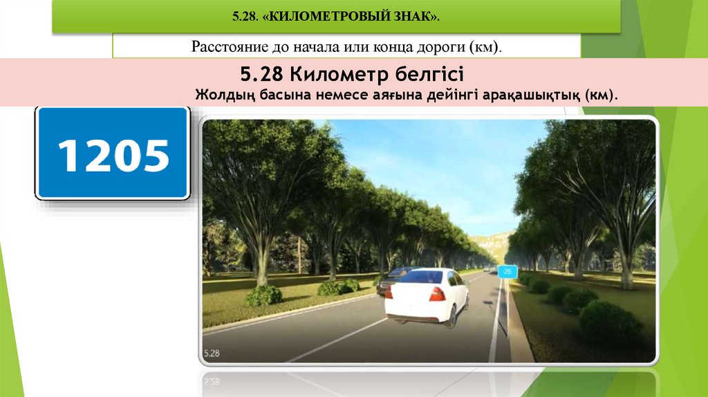 5.28. «КИЛОМЕТРОВЫЙ ЗНАК».Расстояние до начала или конца дороги (км).