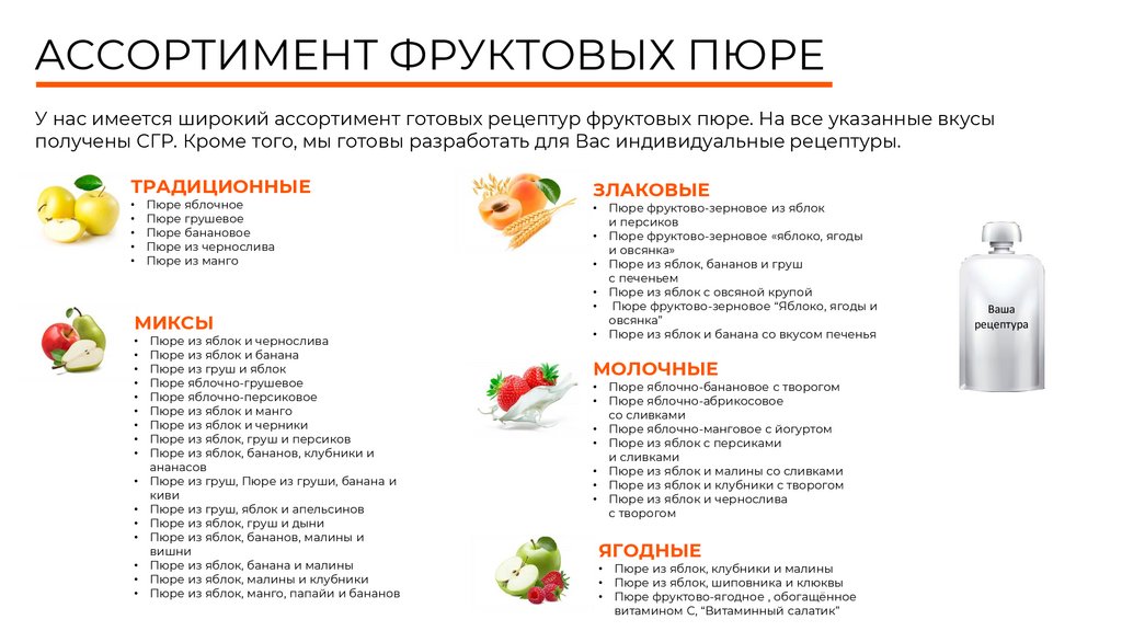 Кроме того, мы готовы разработать для Вас индивидуальные рецептуры.