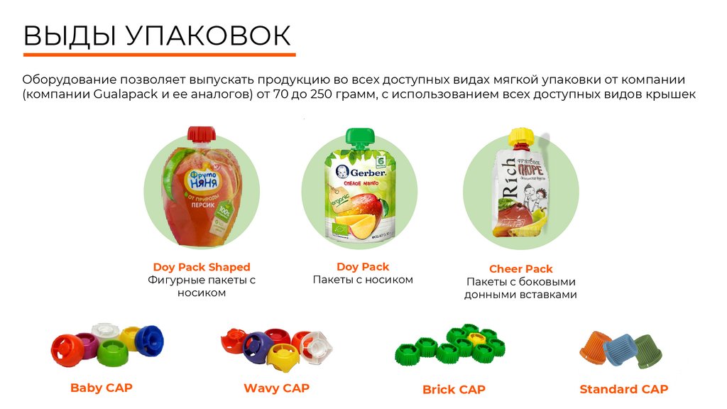 ВЫДЫ УПАКОВОКОборудование позволяет выпускать продукцию во всех доступных видах мягкой упаковки от компании
