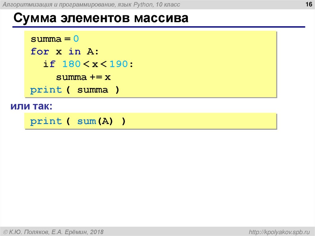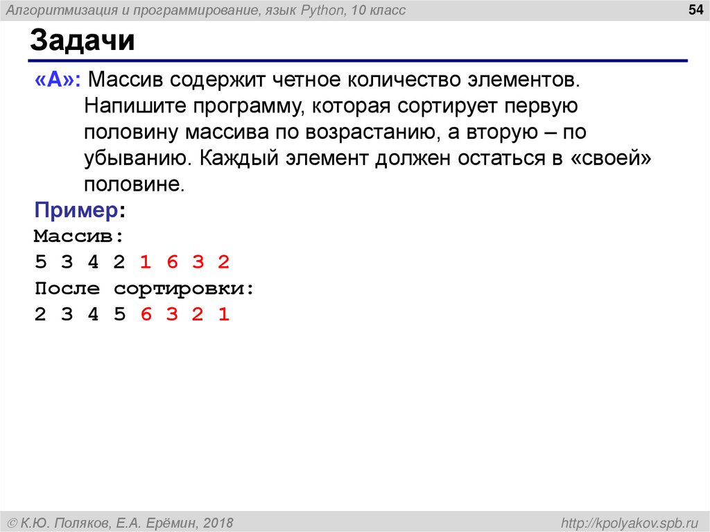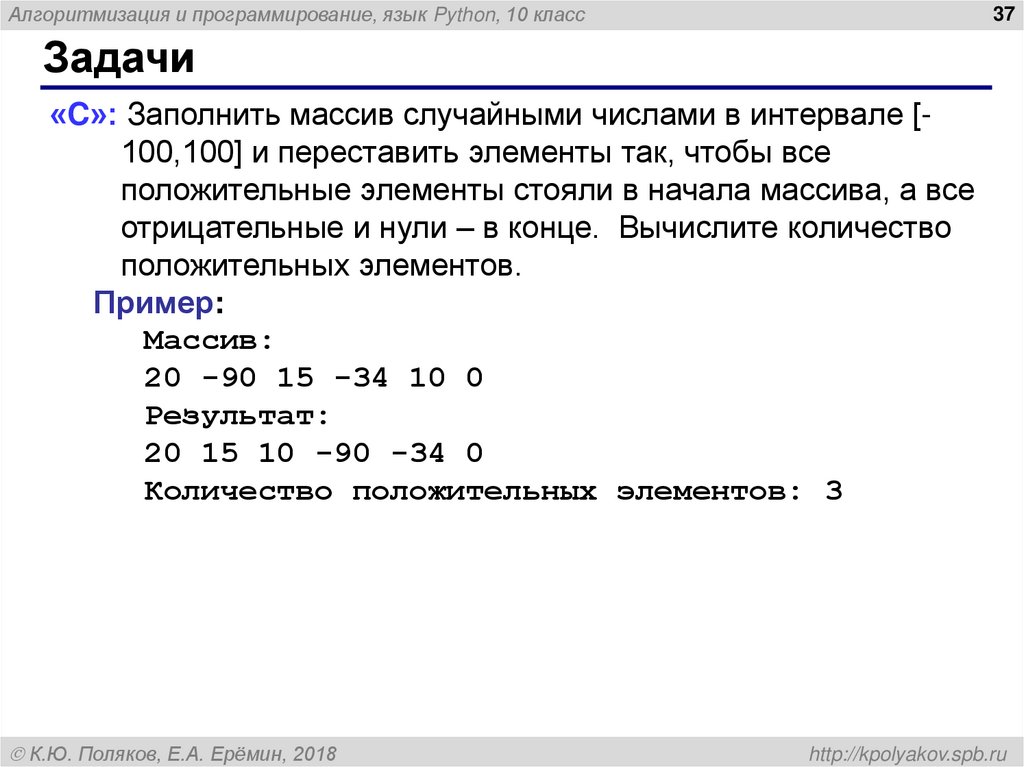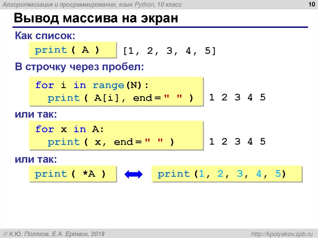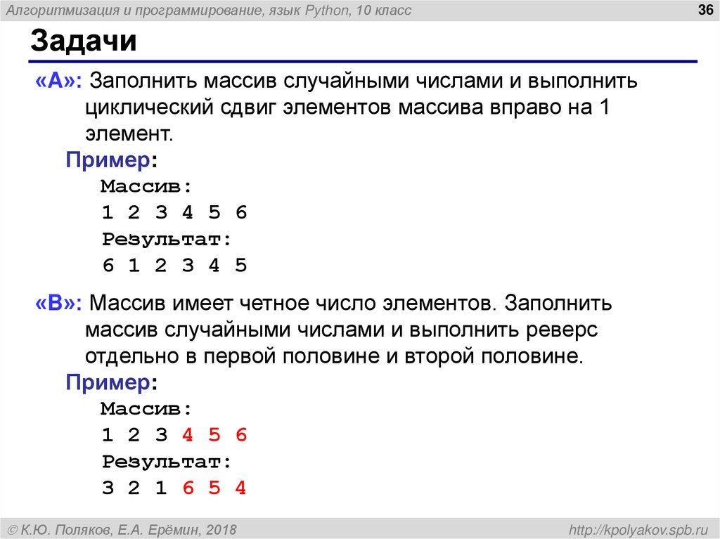 Алгоритмизация и программирование, язык Python. Массивы (10 класс)