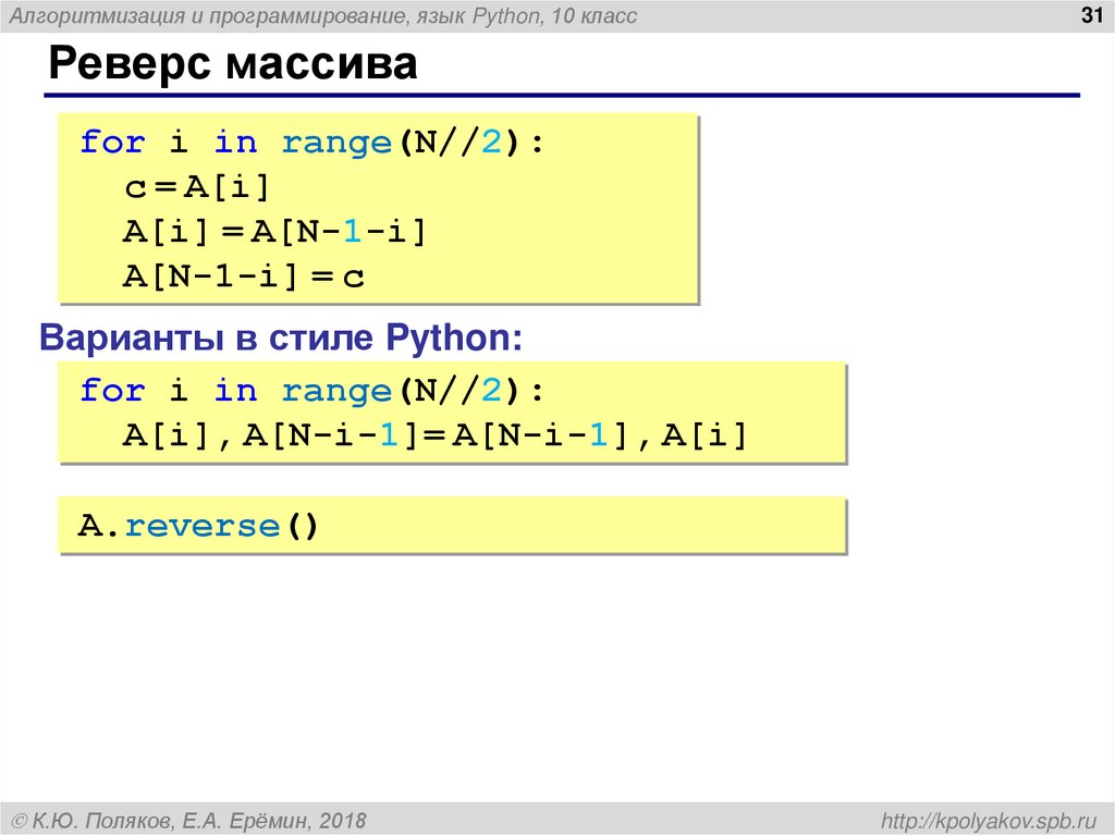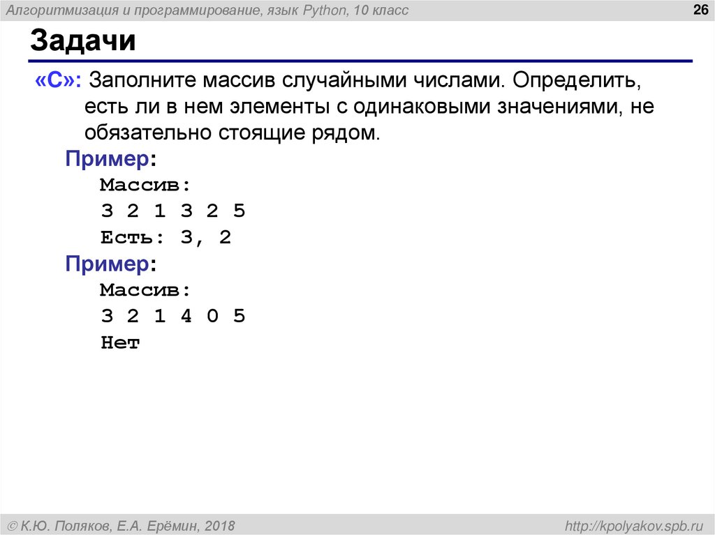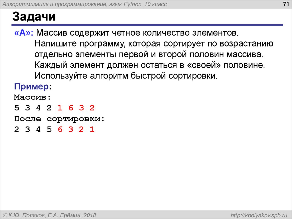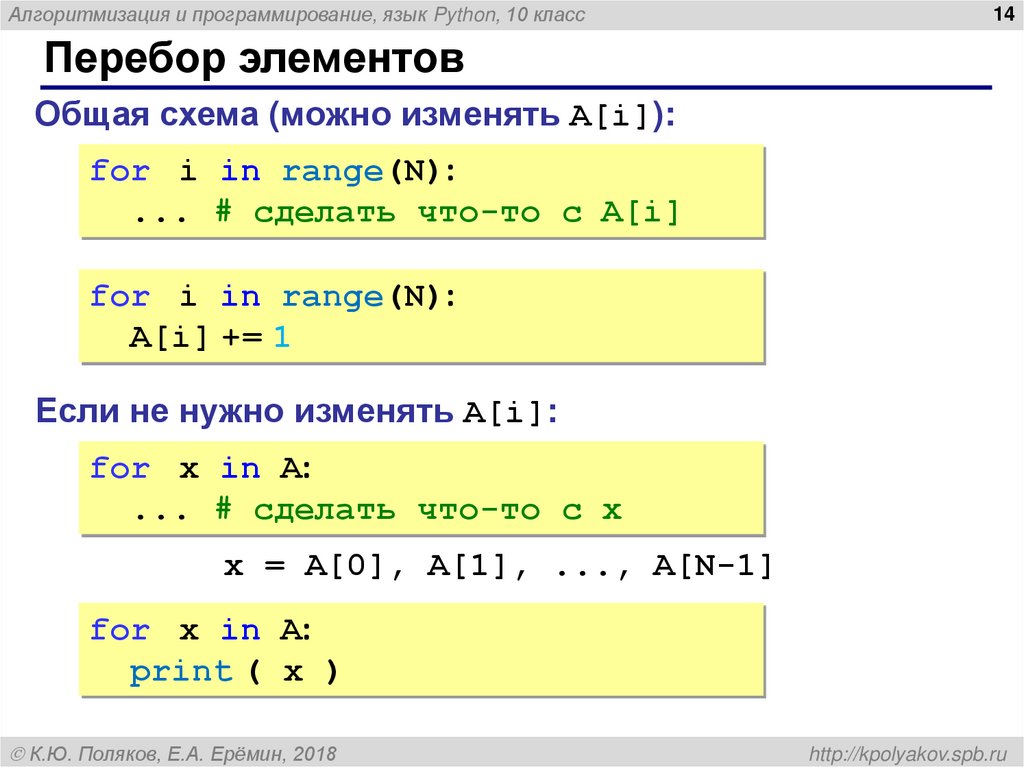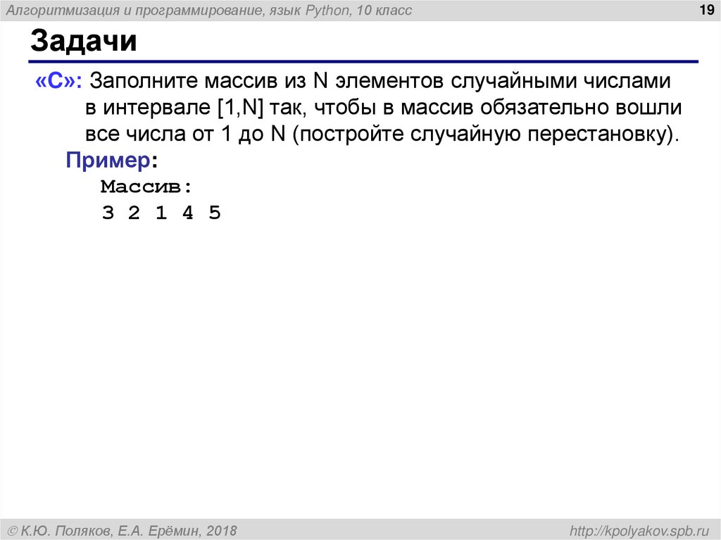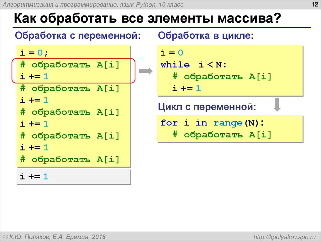 Алгоритмизация и программирование, язык Python. Массивы (10 класс)