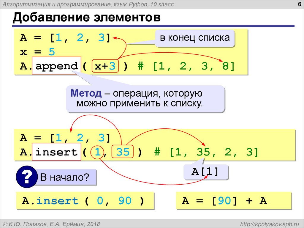 Добавление элементов