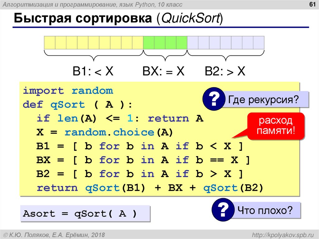 return qSort(B1) + BX + qSort(B2)