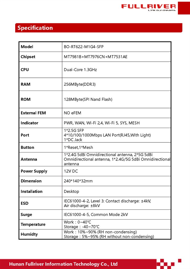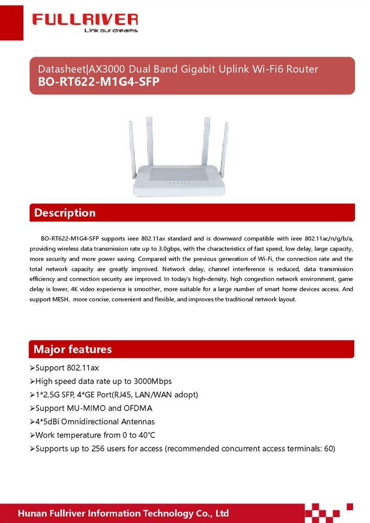 Datasheet|AX3000 Dual Band Gigabit Uplink Wi-Fi6 RouterBO-RT622-M1G4-SFP