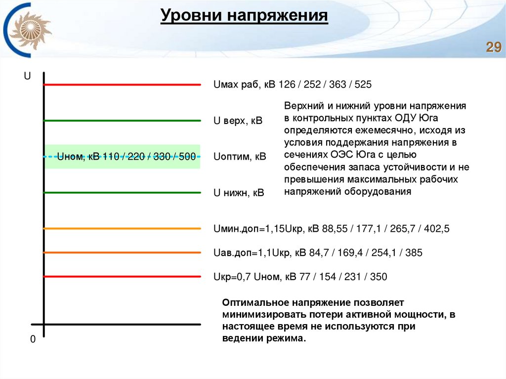 ▬ уровней напряжения на объектах электроэнергетики, допустимых