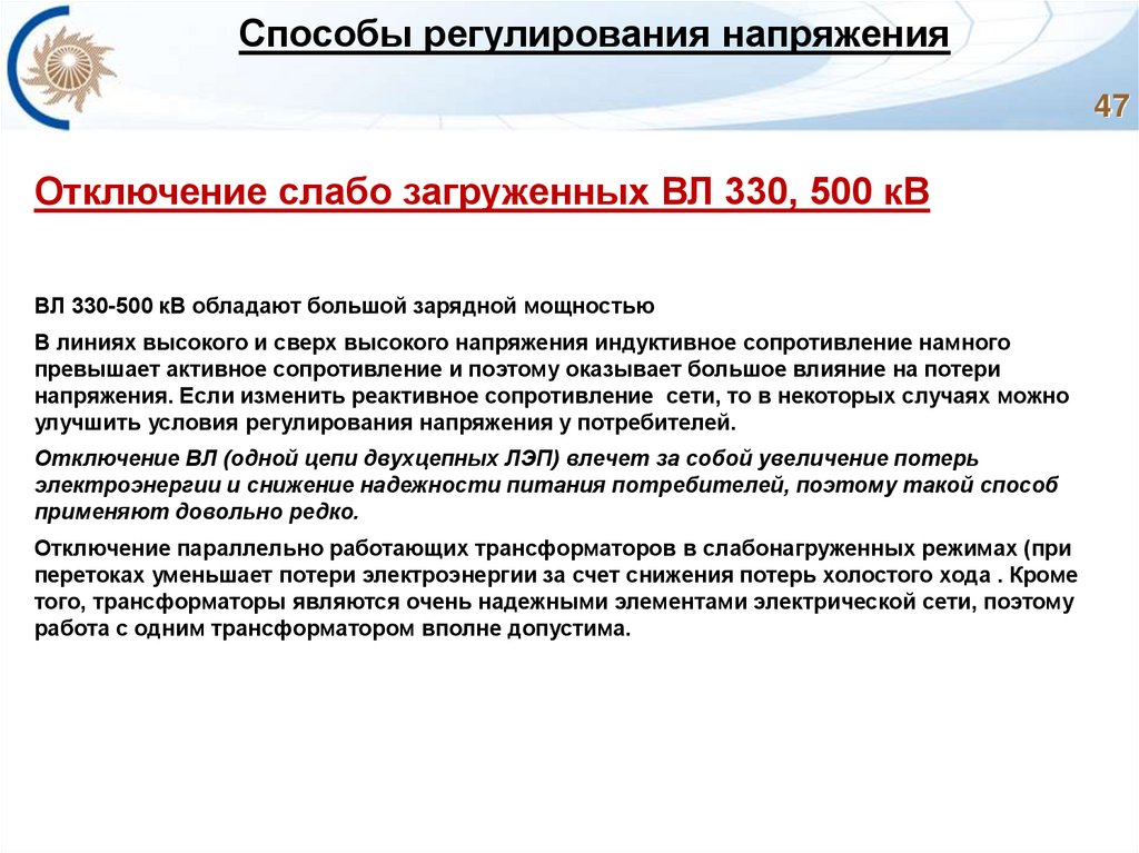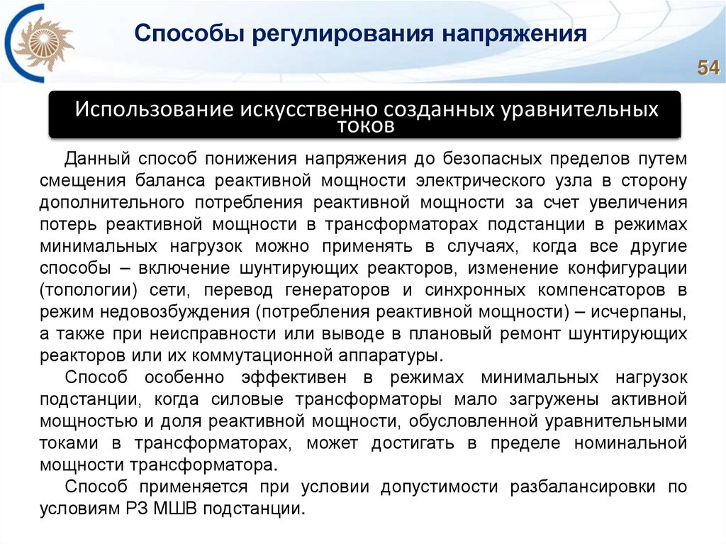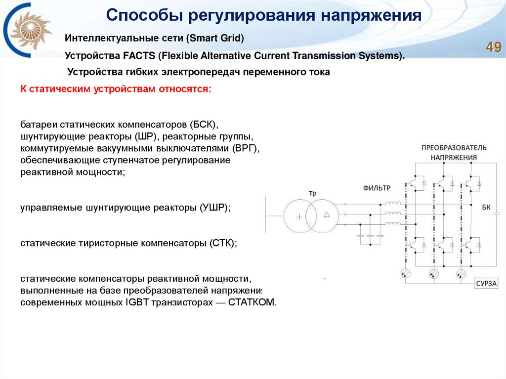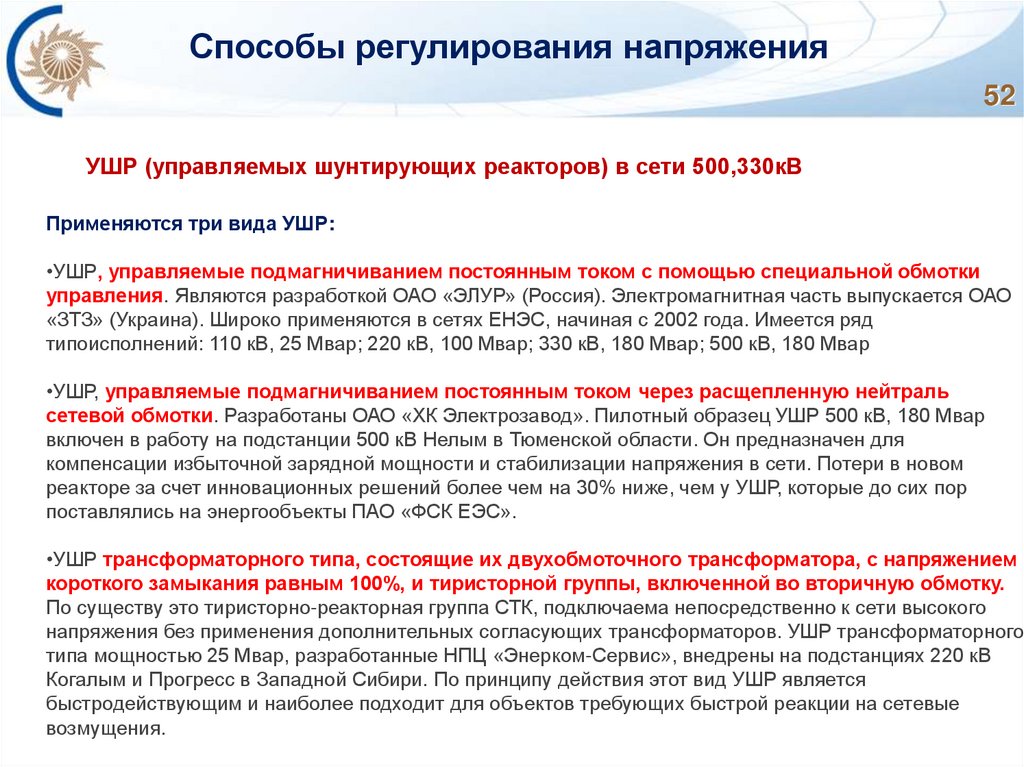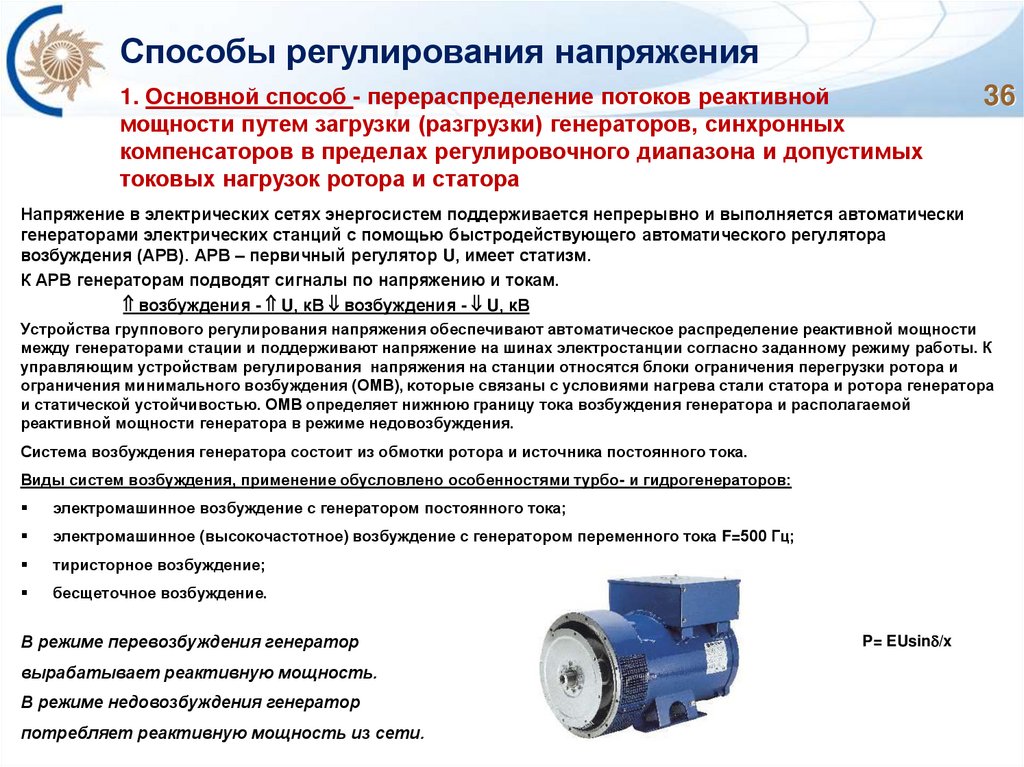 1. Регулирование уровней напряжения в электроэнергетических системах