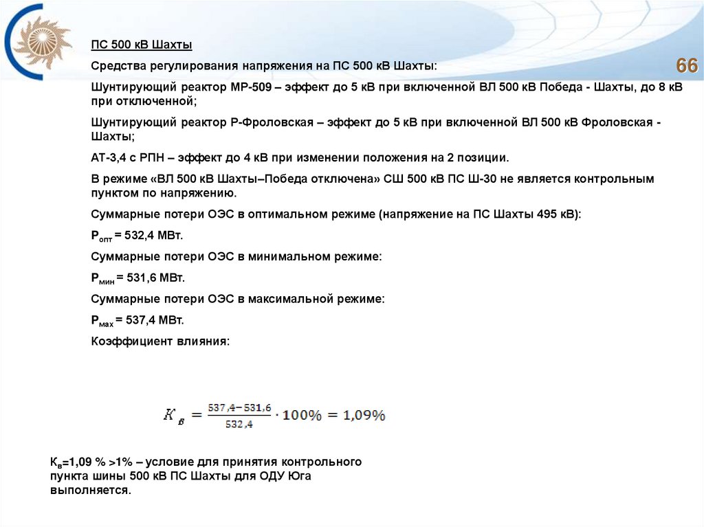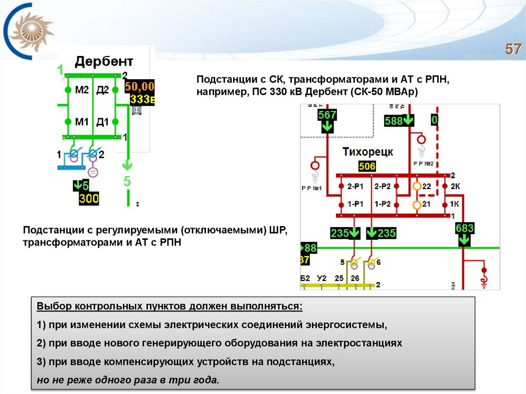 • Для напряжения на шинах объекта, влияющего на напряжение в контрольном пункте