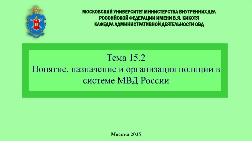МОСКОВСКИЙ УНИВЕРСИТЕТ МИНИСТЕРСТВА ВНУТРЕННИХ ДЕЛРОССИЙСКОЙ ФЕДЕРАЦИИ ИМЕНИ В.Я. КИКОТЯ