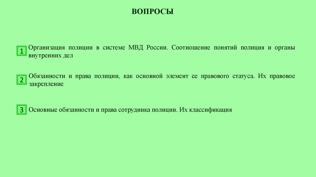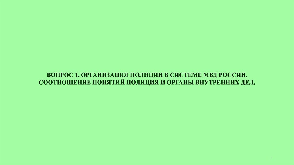 ВОПРОСЫОрганизация полиции в системе МВД России. Соотношение понятий полиция и органы