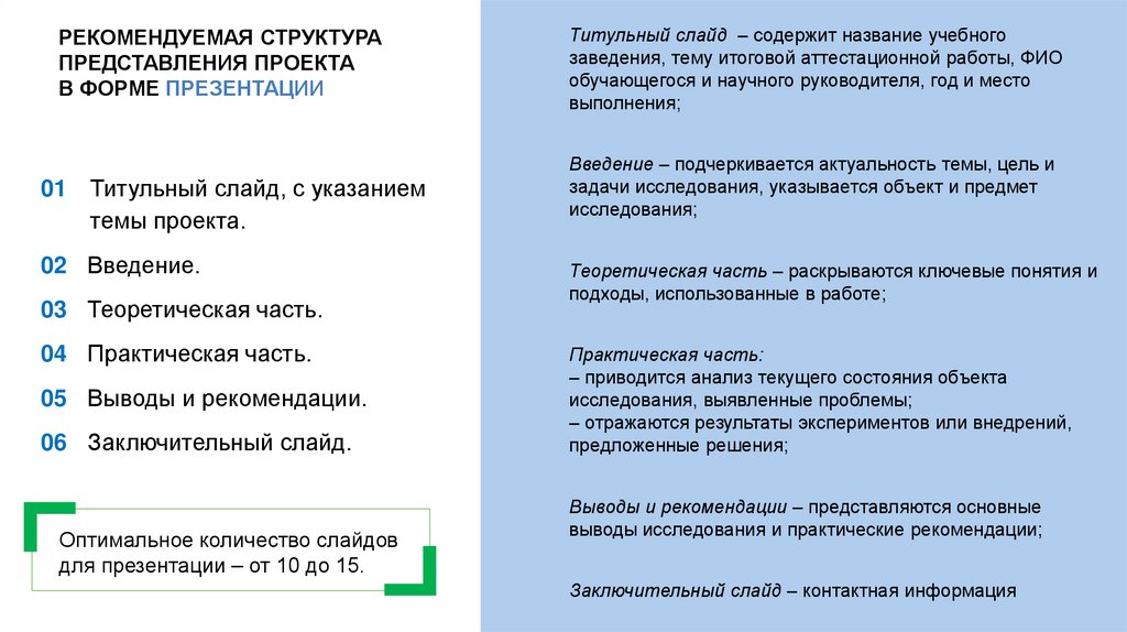 РЕКОМЕНДУЕМАЯ СТРУКТУРАПРЕДСТАВЛЕНИЯ ПРОЕКТА