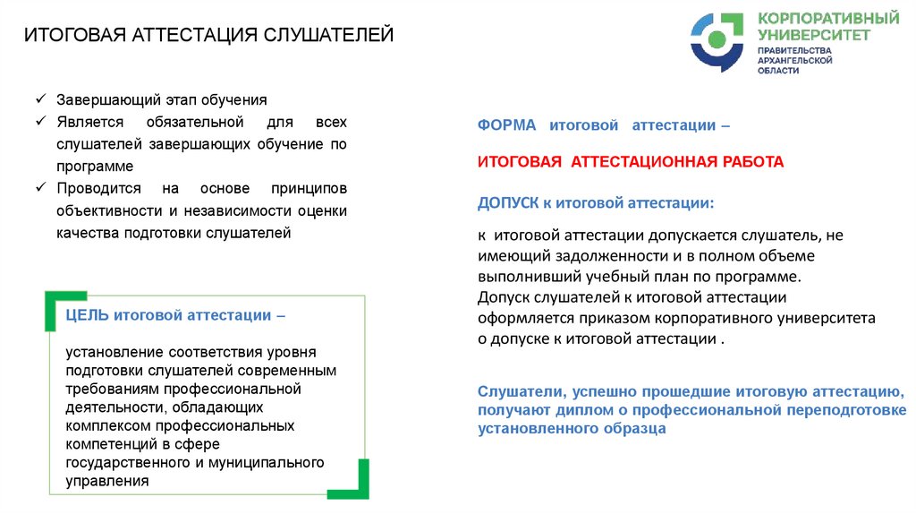 ИТОГОВАЯ АТТЕСТАЦИЯ СЛУШАТЕЛЕЙЗавершающий этап обучения