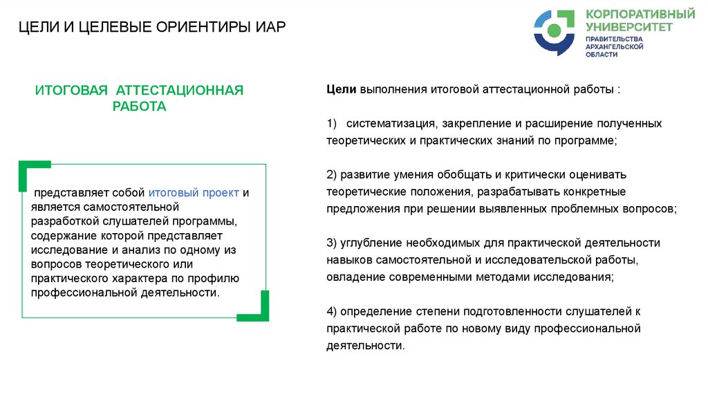 ЦЕЛИ И ЦЕЛЕВЫЕ ОРИЕНТИРЫ ИАРИТОГОВАЯ АТТЕСТАЦИОННАЯ