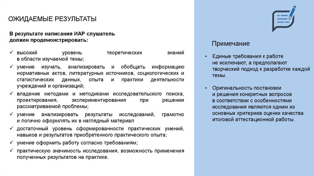 ОЖИДАЕМЫЕ РЕЗУЛЬТАТЫВ результате написания ИАР слушатель