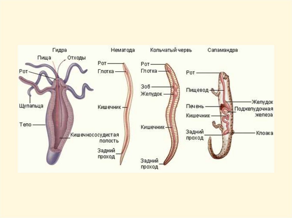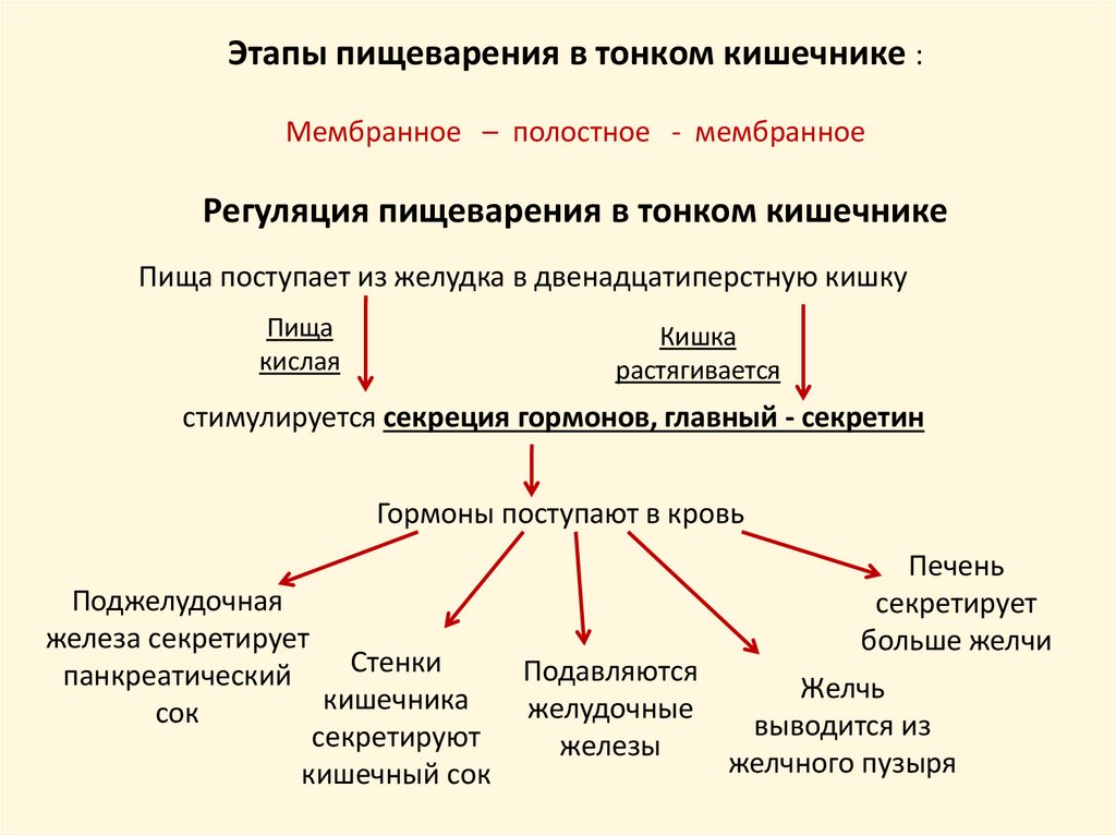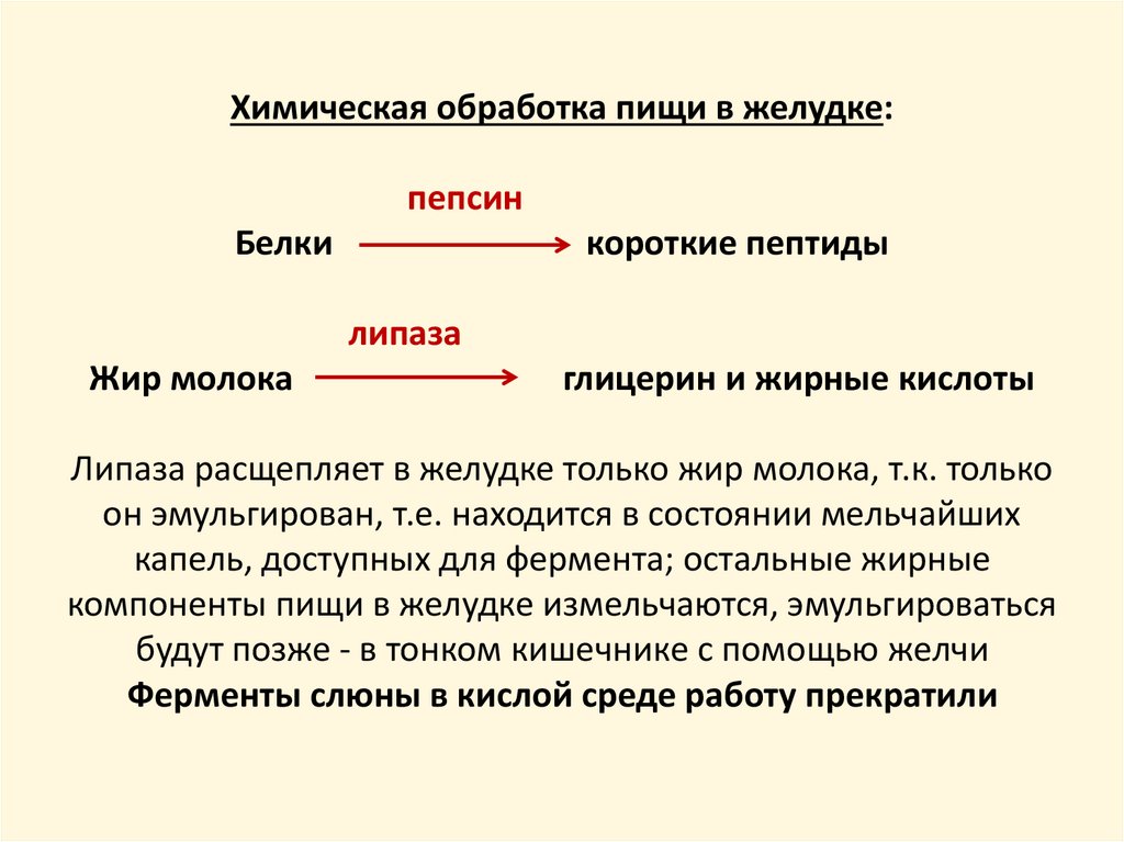 Виды пищеварения – полостное (в желудке), пристеночное (мембранное)(
