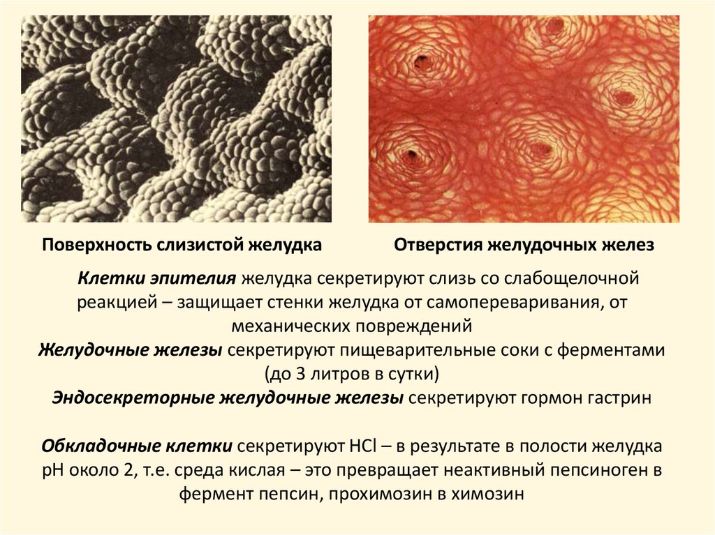 соков (желудочного, кишечного), слизи, соляной кислоты,