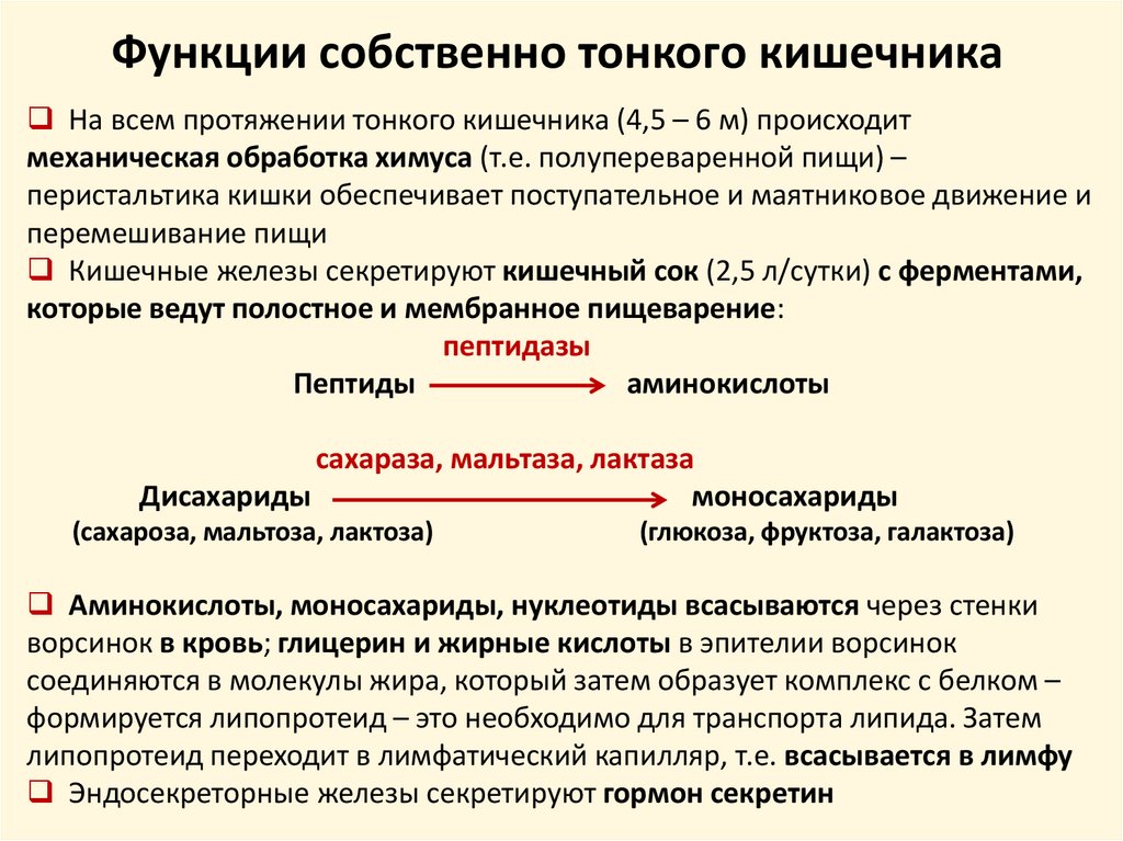 Функции собственно тонкого кишечникаНа всем протяжении тонкого кишечника (4,5 – 6 м) происходит