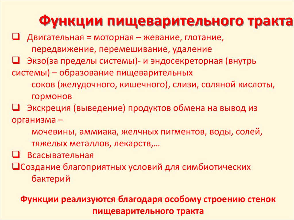 Функции пищеварительного трактаДвигательная = моторная – жевание, глотание,