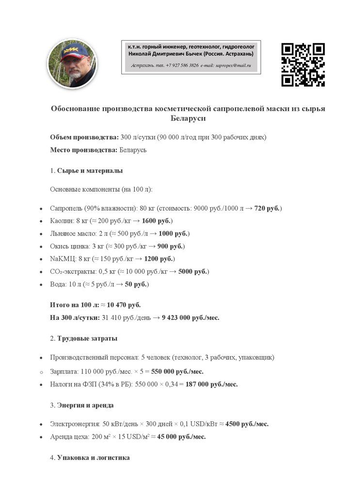 Производство сапропелевой маски в Беларуси рентабельно благодаря: