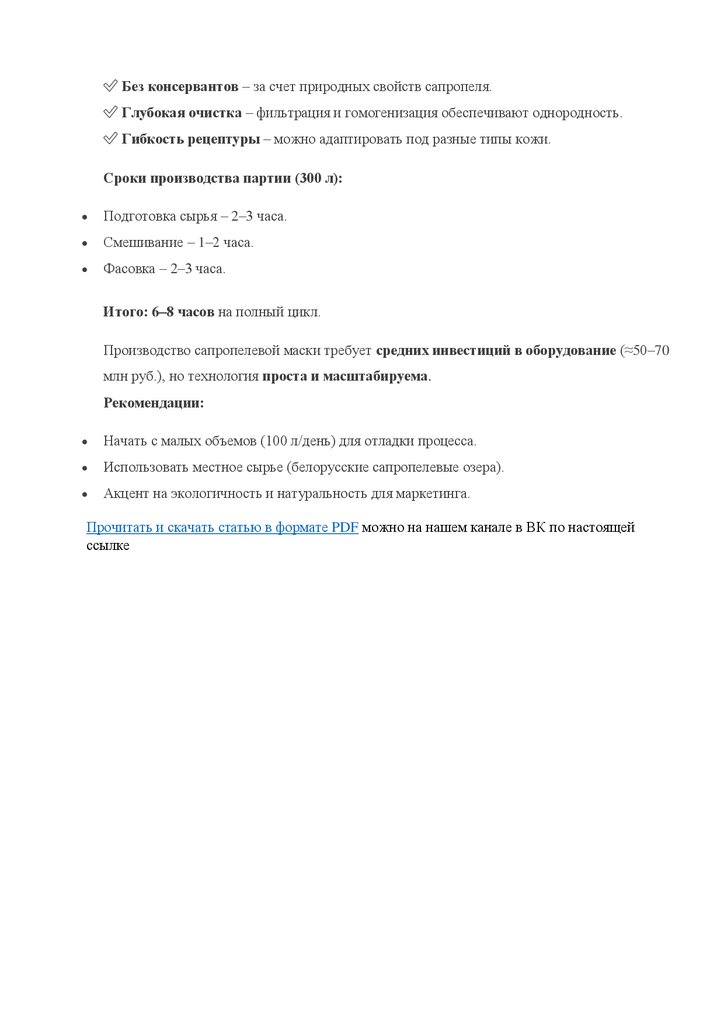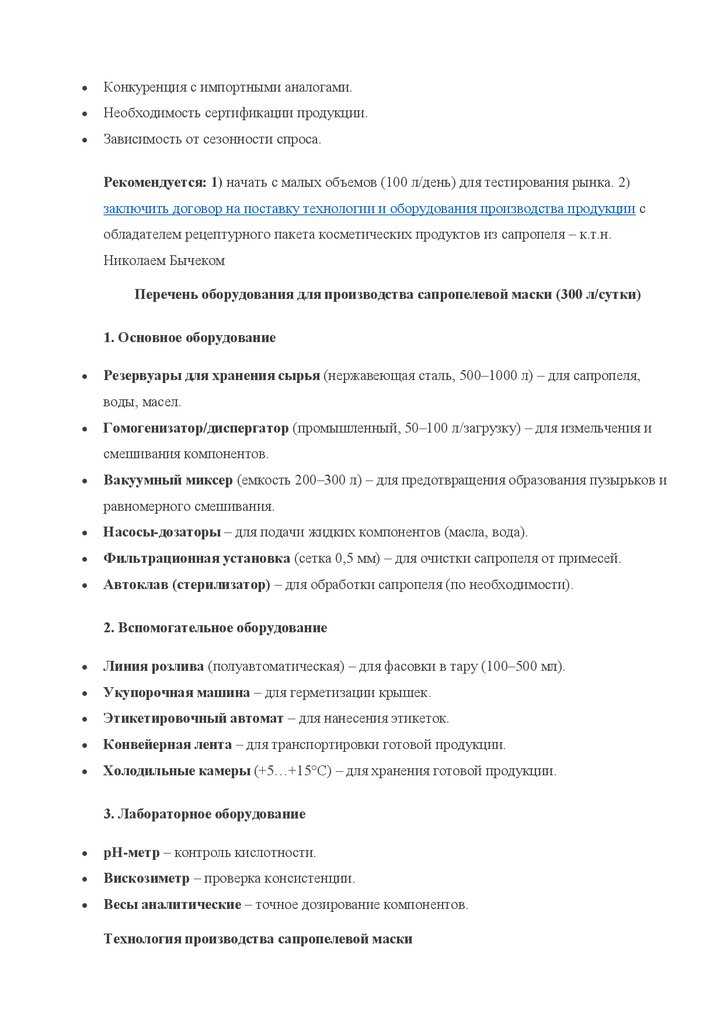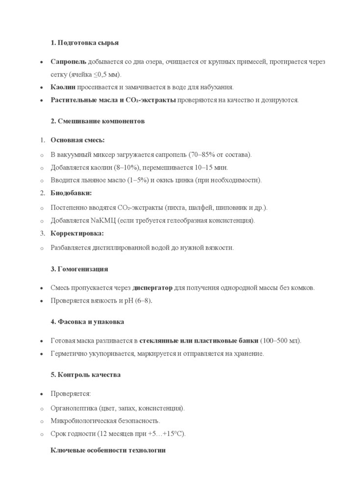 Производство сапропелевой маски требует средних инвестиций в оборудование (≈50–70
