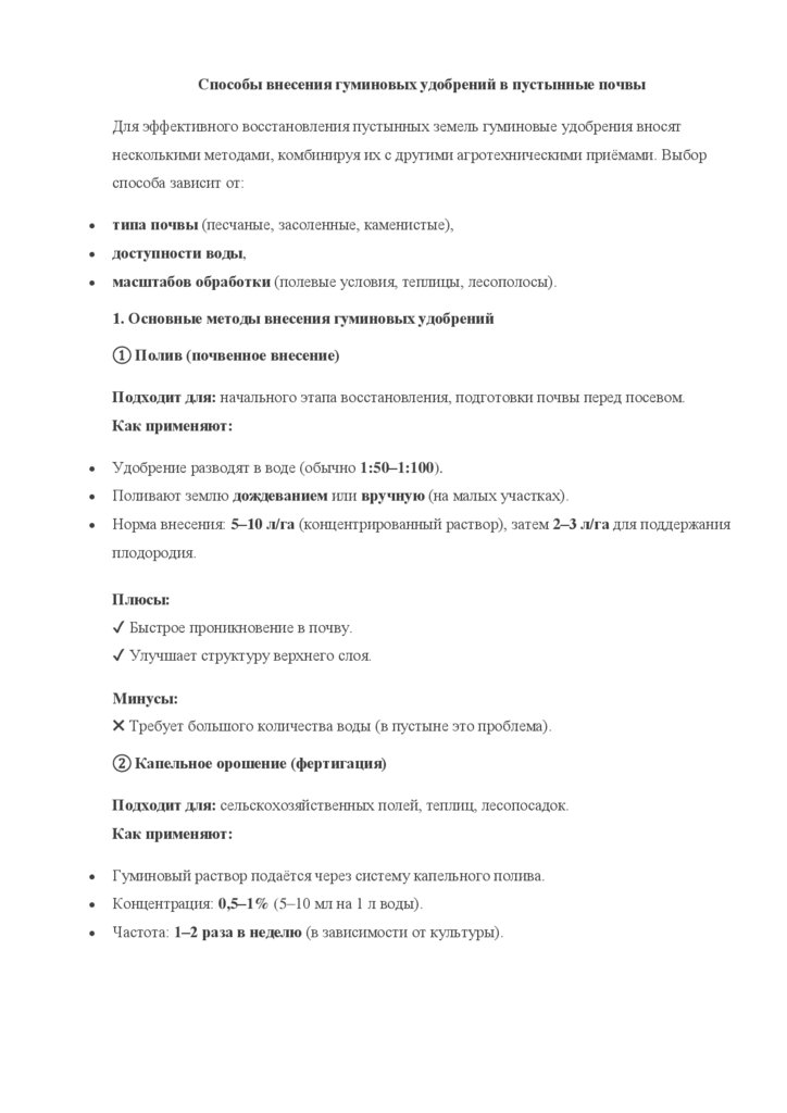 1. Почему гуминовые удобрения эффективны для восстановления пустынь?