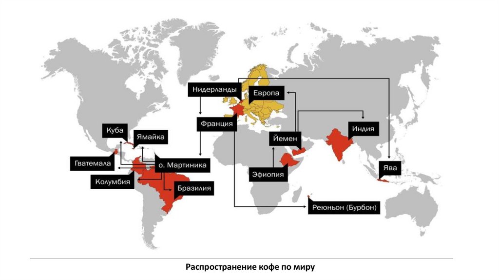 • Примерно в 1600 г первые семена покинули Йемен и достигли Индии. Далее были перевезены