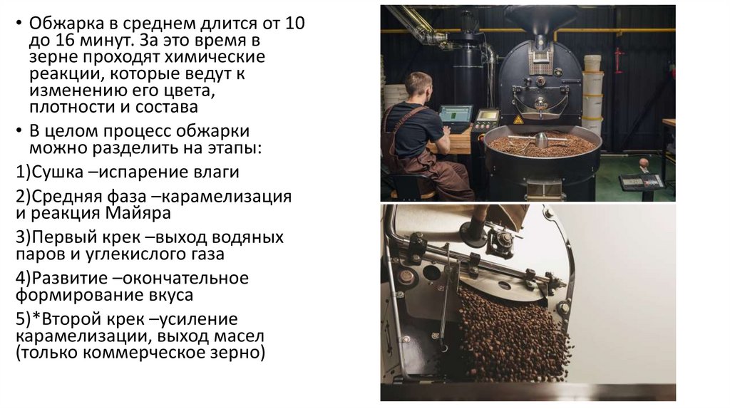 • Обжарка в среднем длится от 10до 16 минут. За это время в
